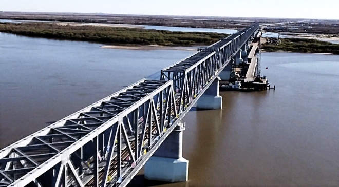 Összekapcsolták az építők pénteken az Amur határfolyón átívelő közúti hidat az orosz Blagovescsenszk és a kínai Hejho között.